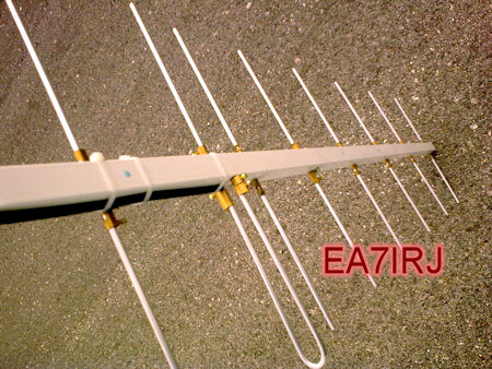 He montado una nueva antena yagi para UHF de 8 elementos basada en los datos publicados por el Radioclub Manquehue de Chile en esta página. Esta vez el boom es metálico y los elementos no están aislados y los he construído con unas estupendas barritas de aluminio de 4 mm. de diámetro por 1 metro de longitud que he conseguido en unos almacenes de bricolaje. El elemento excitado sigue siendo el que se describe en los esquemas de WA5VJB dada la facilidad con la que se monta.